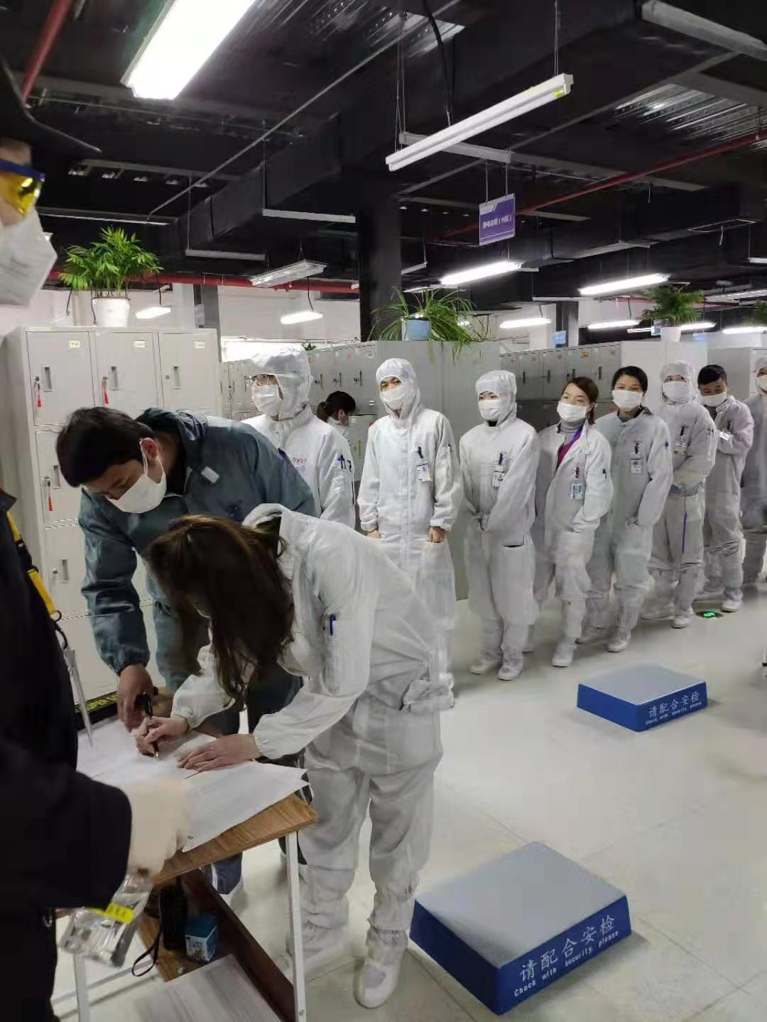 Before resuming work, InnoLight Technology conducted a number of investigations and screening on the health and location of employees to determine who can resume work. From the day of resumption, the company set up a temperature measuring station and registration desk at the entrance of the company. Employees were required to wear a gauze mask and queue to measure body temperature. Due to the particularity of high-end precision manufacturing, employees in different posts wore different protective equipment, ensuring that production would not be affected.